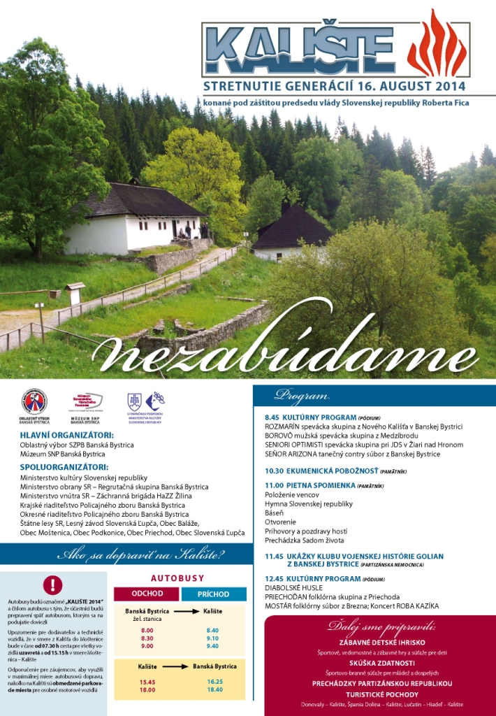 Tradičné Stretnutie generácií na Kališti pred oslavami 70.výročia SNP bude 16.augusta 2014. Za posledné roky sa toto podujatie stalo celoslovenským stretnutím proti fašizmu a na pamiatku slovenských vypálených obcí.