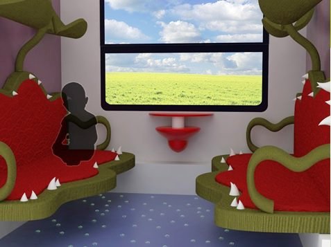 Zaujal aj detský raj so svietiacimi diódami v stenách a mäkkými sedadlami v podobe mäsožravých rastlín, umožňujúcimi na princípe suchého zipsu lepiť plyšové muchy s vážkami alebo hádzať si na ne tenisové loptičky. Veľmi praktické je mäkké kľačadlo pod oknom, z ktorého sa môžu deti pohodlne pozerať cez okno na okolitú krajinu.