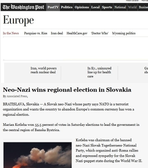 Vo všetkých svetových médiách sa po sobote objavila Banská Bystrica ako výkričník. V nedeľňajšom vydaní denníka Washington Post vyšiel článok „Neonacista vyhral regionálne voľby na Slovensku“, ktorý začína slovami: „Slovenský neonacista, ktorého strana hovorí, že NATO je teroristická organizácia a chce, aby jeho krajina prestala používať európsku menu, vyhral regionálne voľby.“ A potom nasleduje Banská Bystrica…