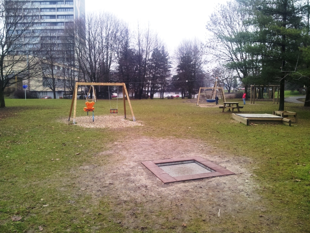 Je fakt, že medzi hernými prvkami sa nachádzajú aj také atrakcie, ktoré nie sú na iných ihriskách, ako napríklad lanovka, trampolína, netradičná hojdačka pre viac detí, špeciálny sedák na hojdačke v tvare medvedíka pre hendikepované deti alebo stolík pri pieskovisku.. V blízkosti ihriska je discgolfový kôš na hru frisbee.