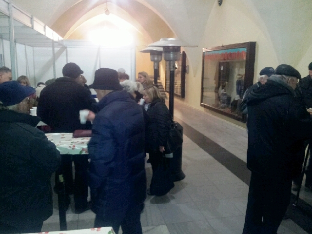 Na Námestí SNP bolo vo štvrtok večer pred stánkom Lions Clubu aj v chladnom štvrtkovom večeri množstvo Bystričanov, ktorý chutil i nealko vianočný punč napriek predchádzajúcemu nepríjemnému a zbytočnému incidentu zo strany mesta. Zavretá krytá terasa, ktorá sa stala jadrom spou, bola prázdna. Majiteľka budovy nazývanej kedysi „U Kemov“ otvorila hosťom Lions Clubu svoje vstupné priestory, kde mohli návštevníci pri stoloch pod klenbami ochutnať horúci vianočný punč s občerstvením.