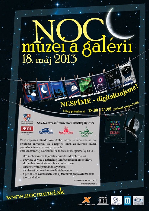 Tohtoročná Noc múzeí a galérií je už ôsmym ročníkom mimoriadne úspešného podujatia. Počas jednej noci v roku nechávajú múzeá a galérie na celom Slovensku otvorené svoje brány do neskorých nočných hodín a svojim návštevníkom ponúkajú nenapodobiteľnú tajuplnú atmosféru.