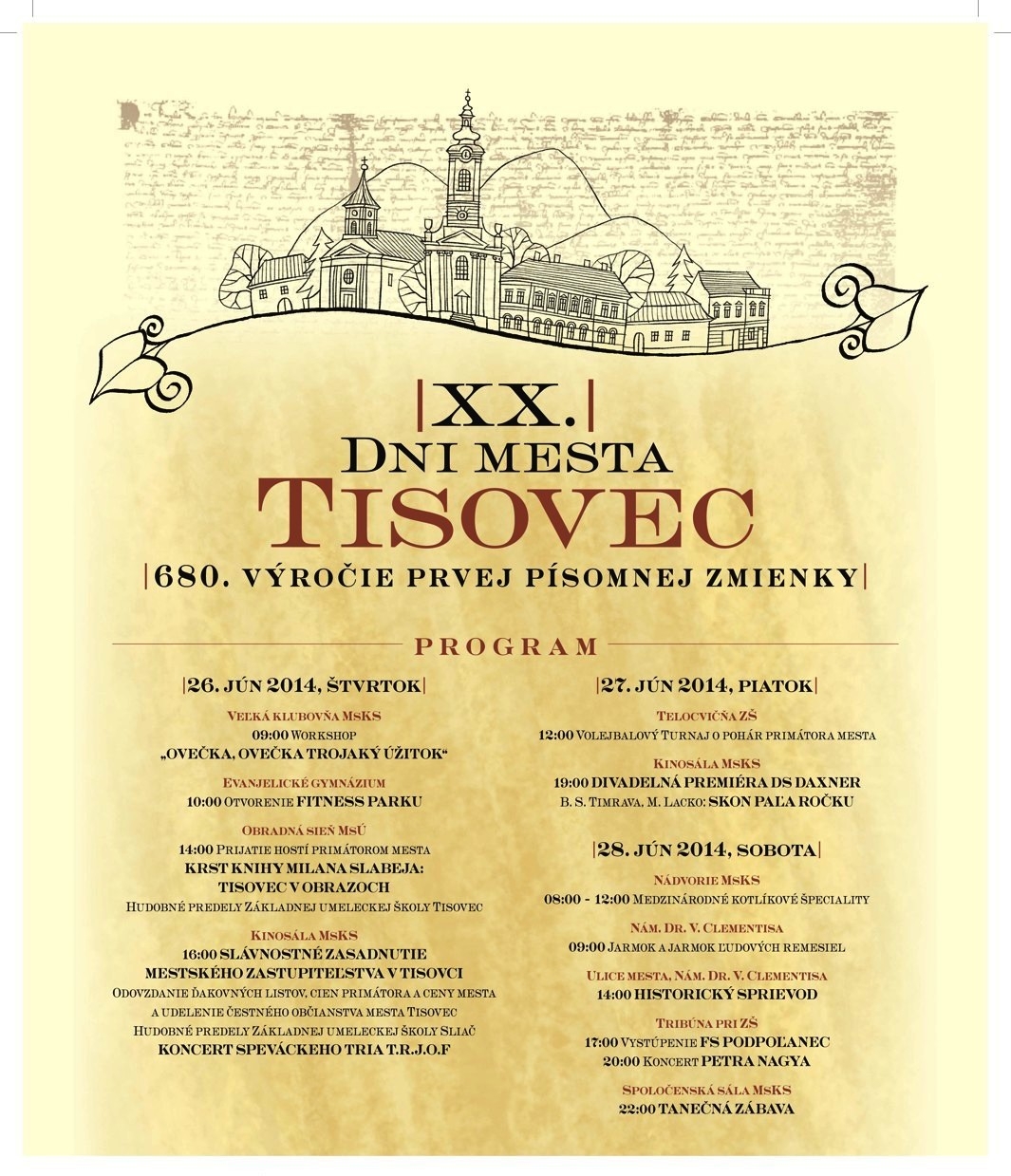 Primátor mesta Tisovec Peter Mináč spolu s vydavateľom časopisu Cestovateľ Ľubomírom Motyčkom (obaja sú poslanci BBSK), predstavili v Banskej Bystrici bohatý program XX. Dní mesta Tisovec pri príležitosti 680.výročia písomnej zmienky. Podujatie sa uskutoční v dňoch 26.-28.júna 2014.