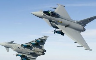 Eurofighter Typhoon vznikol v spolupráci štyroch krajín – Talianska, Veľkej Británie, Nemecka a Španielska. Dvojmotorové viacúčelové stíhacie lietadlo plní úlohu útočného lietadla, ale aj záchytného stíhača. Kačacie plochy, ktorými disponuje, mu znižujú pristávaciu a vzletovú rýchlosť a tiež zvyšujú jeho obratnosť. Aj výborné manévrovacie schopnosti vo veľkej výške robia z tohto lietadla významný prvok silnej protivzdušnej obrany.