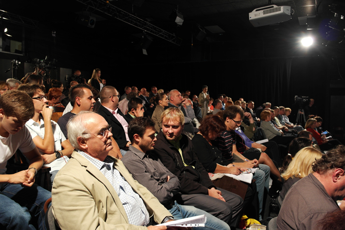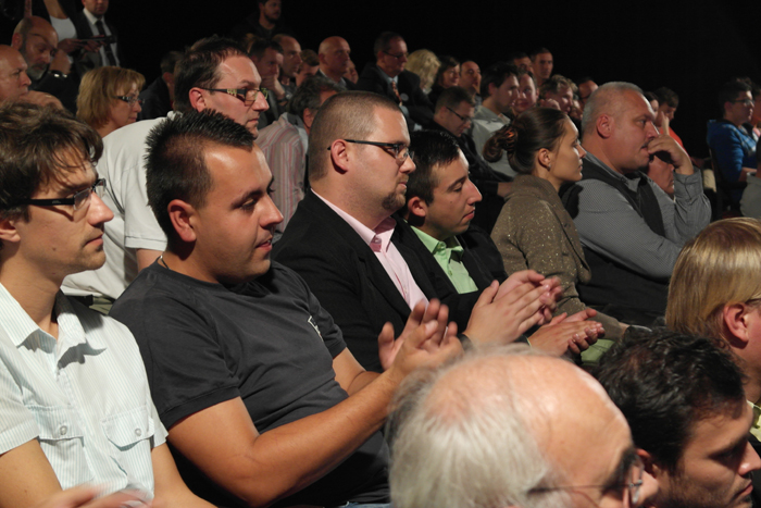 Obaja diskutéri mali v hľadisku divadelnej sály banskobystrickej Akadémie umení aj svoje fan kluby. Kým ten Maňkov bol ticho a pri odpovediach tlieskal svojmu kandidátovi, Kaníkovi podporovatelia okrem fandenia svojmu kandidátovi často sprevádzali odpovede súpera hlasným pokrikovaním.