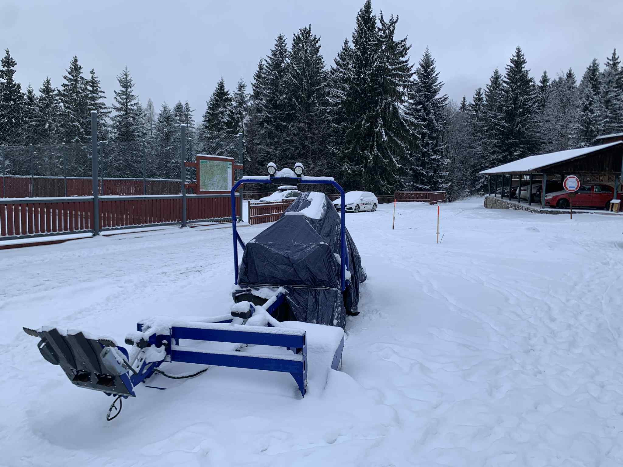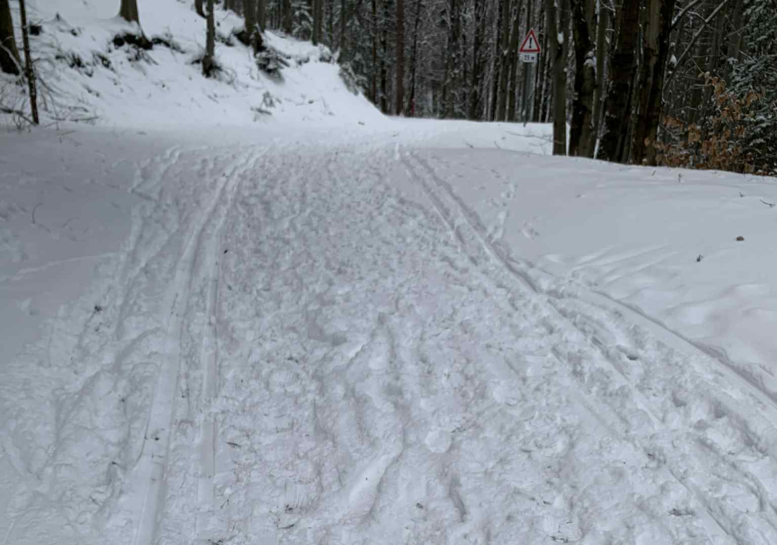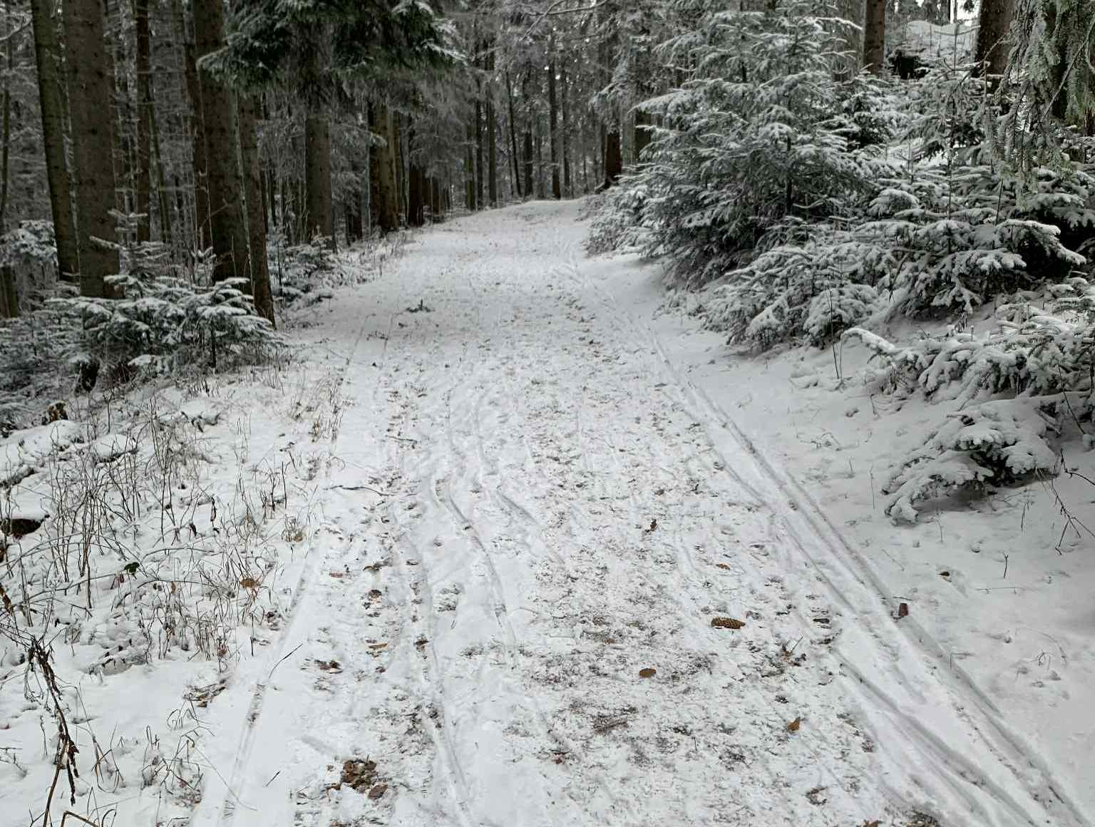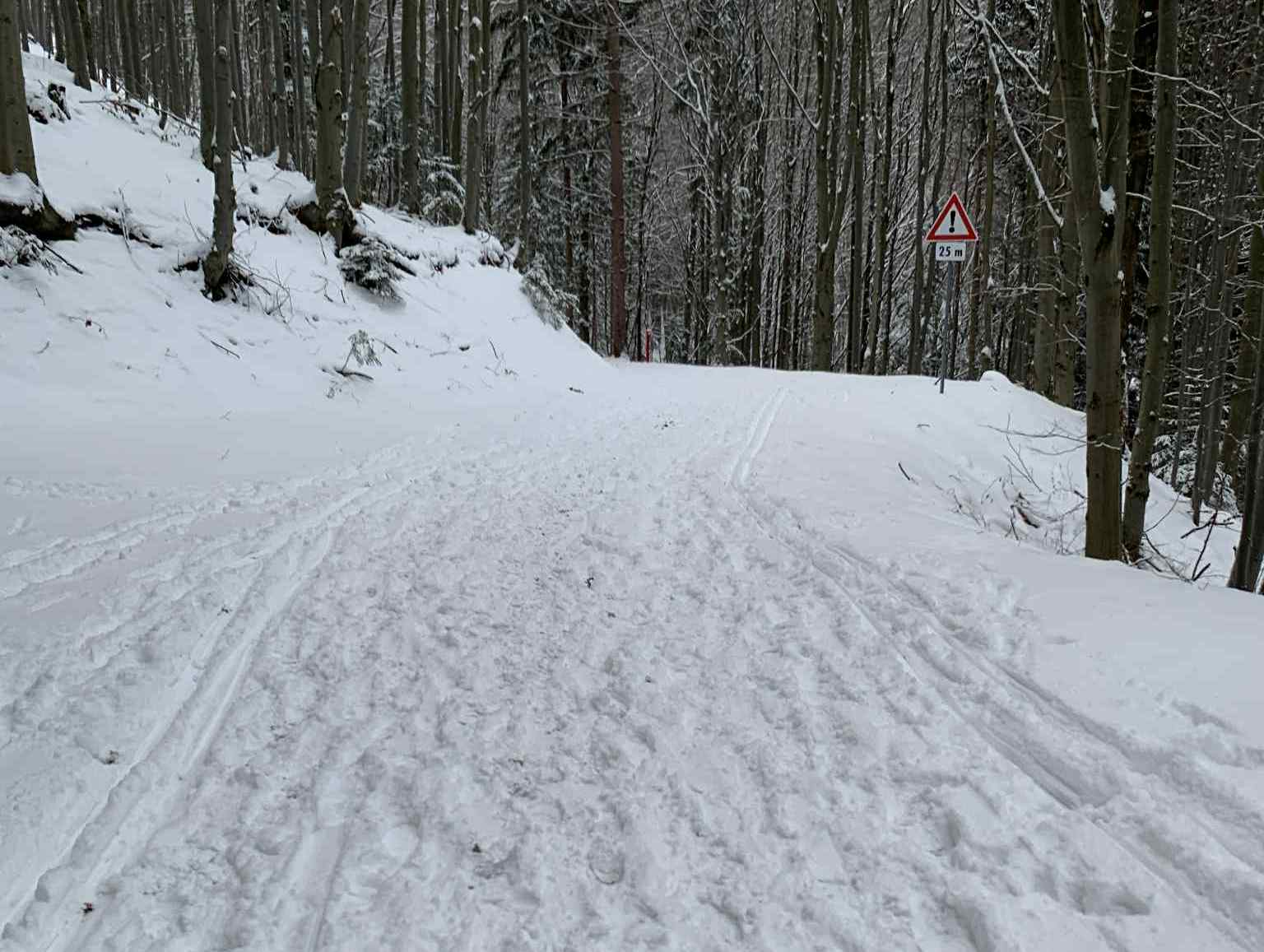 Sneh nemal žiadny základ, takže momentálne sa nedá upravovať ratrakom . Podklad s kameňmi sa najmä pod stromami rýchlo odkrýva. Takže kto chce vyraziť na Tajovskú či Králickú zvážnicu, ZAaRES odporúča staršie bežky a hlavne v zjazdoch treba byť veľmi opatrný. Smerom na hrebeň môžu byť podmienky aj lepšie.