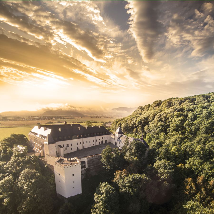 Dodal, že ťahákom sú nielen izby v siedmich kategóriách, zariadené dobovým nábytkom v stredovekom štýle, ale aj Veľká Kongresová sála kráľa Žigmunda pre 200 osôb, vytesaná do skaly a menšia sála kráľa Mateja Korvína, Biely a Červený salónik, či Malá a Veľká rytierska sála s kaplnkou. Kaplnka bola zasvätená sv. Michaelovi Archanjelovi arcibiskupom Mons. Leopoldom Mancinim z Vatikánu. Na tie nadväzuje gotická Kaplnka, kde môžu byť cirkevné obrady. Kongresové sály a salóniky situované v historických aj moderných priestoroch zámku, sú určené najmä pre firemnú klientelu, teambuildingy a školenia. Rytierske sály sú vhodné zas pre spoločenské podujatia, ceremónie a tiež cirkevné obrady.