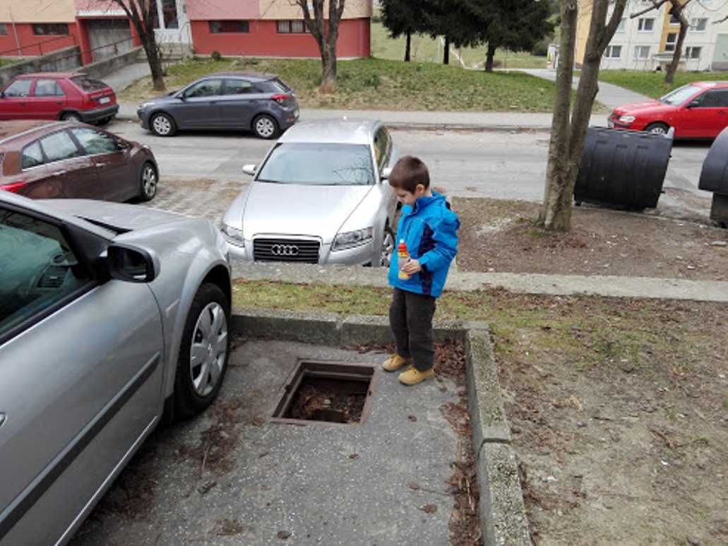 Jednalo sa o kanalizačnú vpusť bez poklopu. Našťastie do nej pravdepodobne nikto nevstúpil ani nezavadilo o ňu koleso auta. Upozornenie si všimol správca parkoviska a pri dieru osadil výstražnú značku. Teraz sme si všimli, že na diere je už pokop, takže problém je vyriešený.