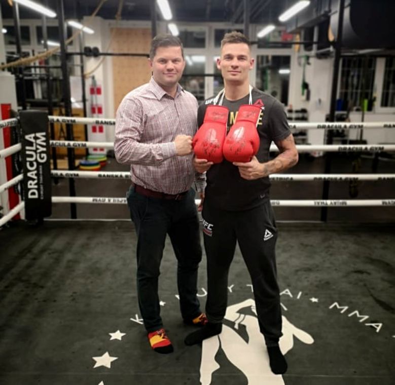 Anton Minárik predstavil projekt „Rád pomáham“ aj svetovému thaiboxerovi z Banskej Bystrice Vladimírovi Draculovi Moravčíkovi, ktorý veľmi ochotne prijal ponuku zapojiť sa do charitatívnej dražby: