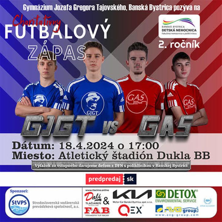 Druhý ročník Charitatívneho futbalového zápasu medzi dvoma banskobystrickými gymnáziami – sa uskutoční 18. apríla 2024 o 17:00 hodine na atletickom štadióne Dukla Banská Bystrica. Finančný výťažok zo zápasu darujú organizátori Detskej fakultnej nemocnici s poliklinikou v Banskej Bystrici.