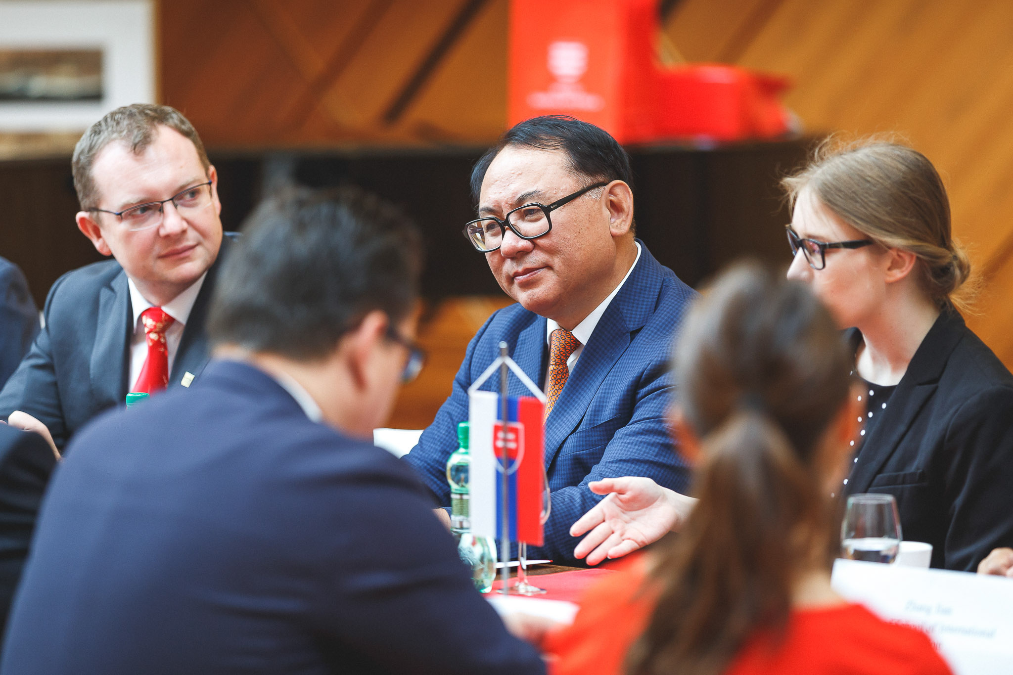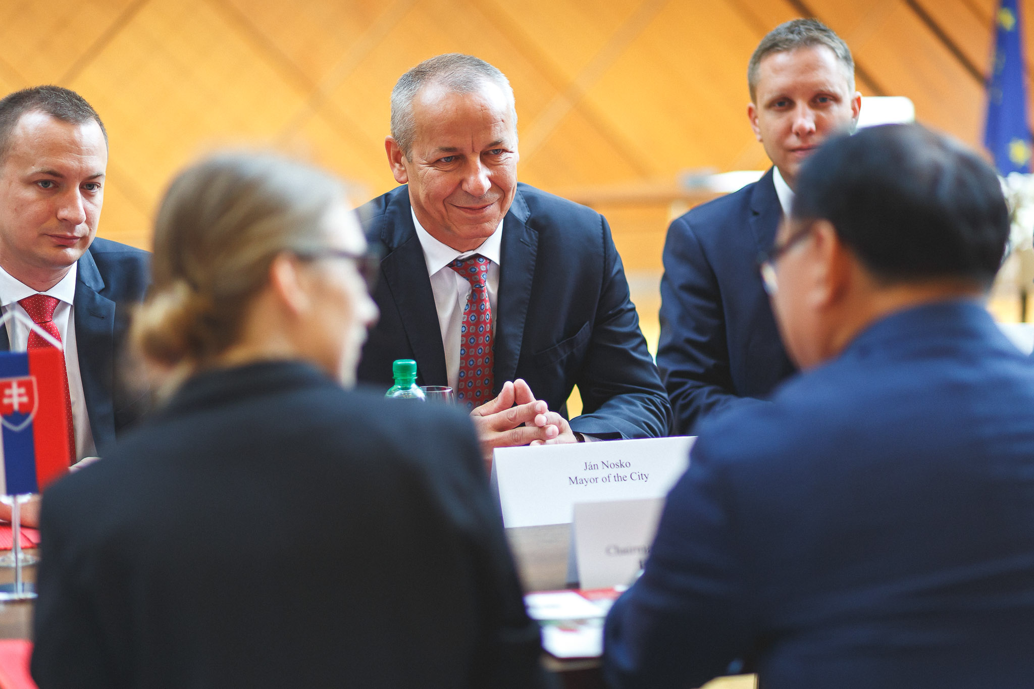 privítal primátor Ján Nosko čínskych hostí v Cikkerovej sieni Radnice v Banskej Bystrici.