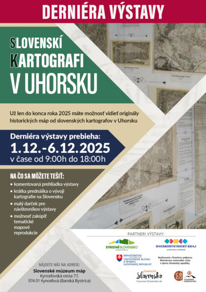 Po úspešných mesiacoch trvania, sa výstava „Slovenskí kartografi v Uhorsku“, blíži k svojmu záveru. Návštevníci ju budú mať možnosť navštíviť už len do konca roka 2025 v priestoroch Slovenského múzea máp v Kynceľovej.