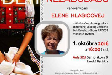 Všetci tanečníci sú odchovanci pani Eleny Hlasicovej, familiárne nazývanej „teta Eňa“, ktorá sa zo zdravotných dôvodov nemohla zúčastniť zájazdov. Preto sa jej tanečníci rozhodli zorganizovať benefičný koncert, ktorý sa uskutoční dňa 1. októbra 2016 o 16:00 hod. v Aule SZU v Banskej Bystrici pod názvom „DETI NEZABÚDAJÚ“. Všetkých srdečne pozývajú a tešia sa na spoločnú oslavu radosti, spevu a tanca spoločne s „našou tetou Eňou“.
