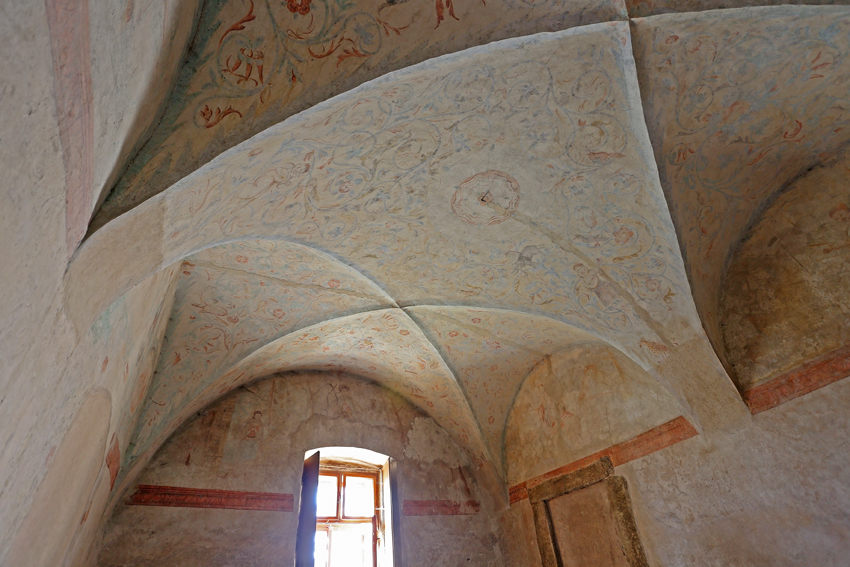 Zo záveru 15. storočia pochádza nástenná maľba v miestnosti na prízemí Maľba v poliach krížovej klenby a na stenách v tejto, tzv. zelenej izbe je jedinečným príkladom renesančnej nástennej maľby. Sú tu namaľované motívy z biblie, klenba je pokrytá rastlinnými úponkami s pestrofarebnými listami a kvetmi, v spleti ktorých sa objavujú rôzne druhy spevavých i dravých vtákov, lesných zvierat, ale aj maľba exotického slona nesúceho na svojom chrbte vežu.