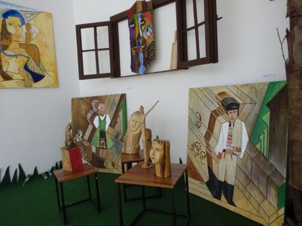 Popri výpožičke nových kníh z knižnice zastavte svoje kroky a ponorte sa do atmosféry viac ako 30 obrazov plných pestrej palety farieb a výtvarných motívov, ktoré sú vyjadrením autorovej fantázie a myšlienkového cítenia (Dáma v klobúku, Objatie, Nech nás život nezomelie, Bozk z lásky, Spomienky na ostrov, Je po láske, Chcem sa s teba napiť, Žena a tváre a iné).