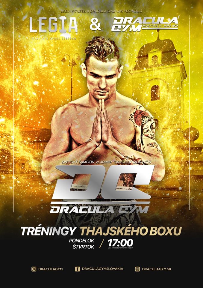 Dracula Gym pozýva záujemcov do breznianskeho Legia slovami: „Zober kámoša / kámošku a príď si vyskúšať tréning thajského boxu s 11 – násobným šampiónom Vladimírom Moravčíkom.“