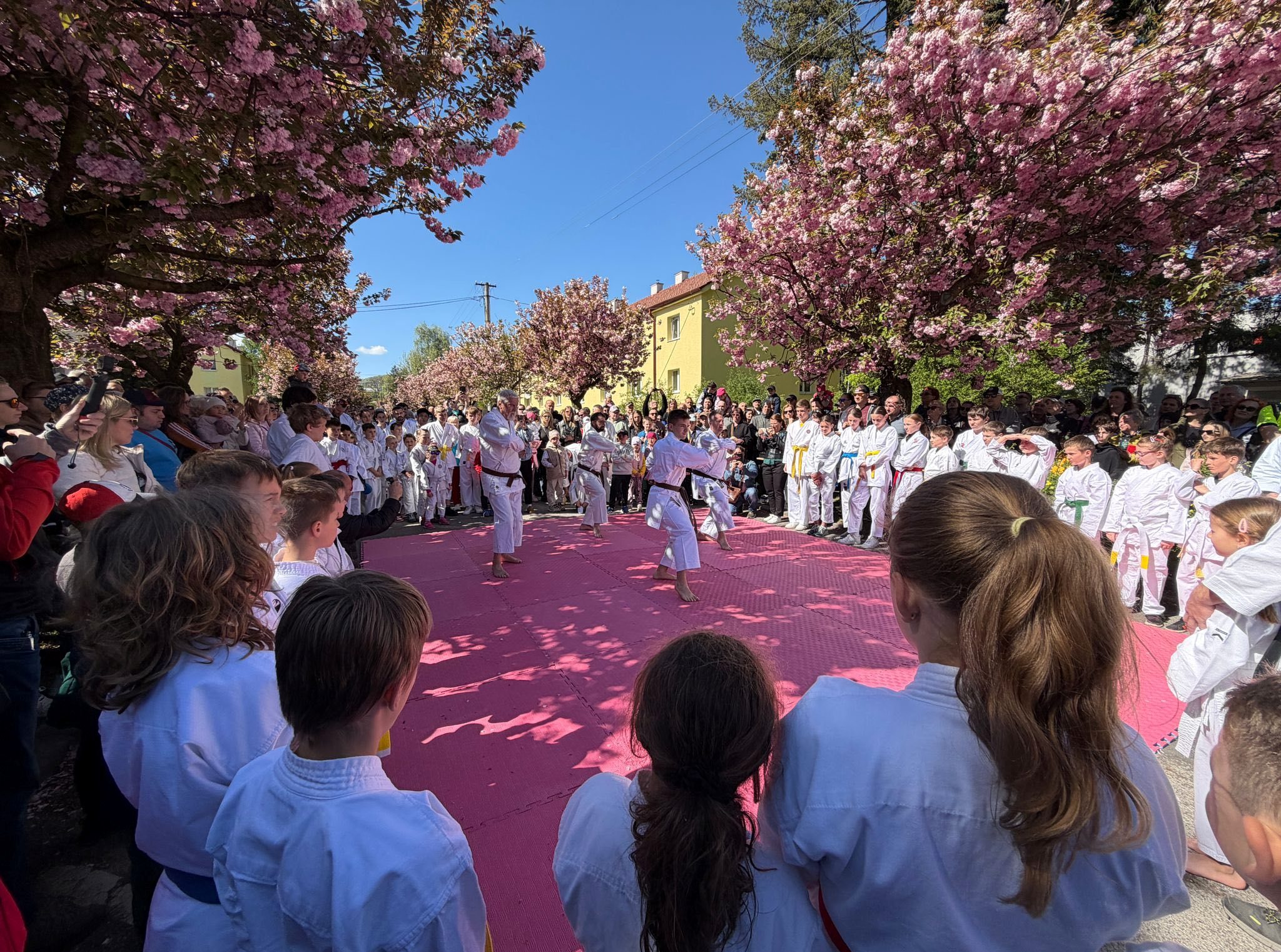 FOTO: Jilemnického ulica v ružovom – Hanami Karate Day spojilo krásu sakúr so silou bojových umení