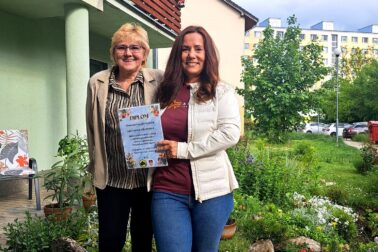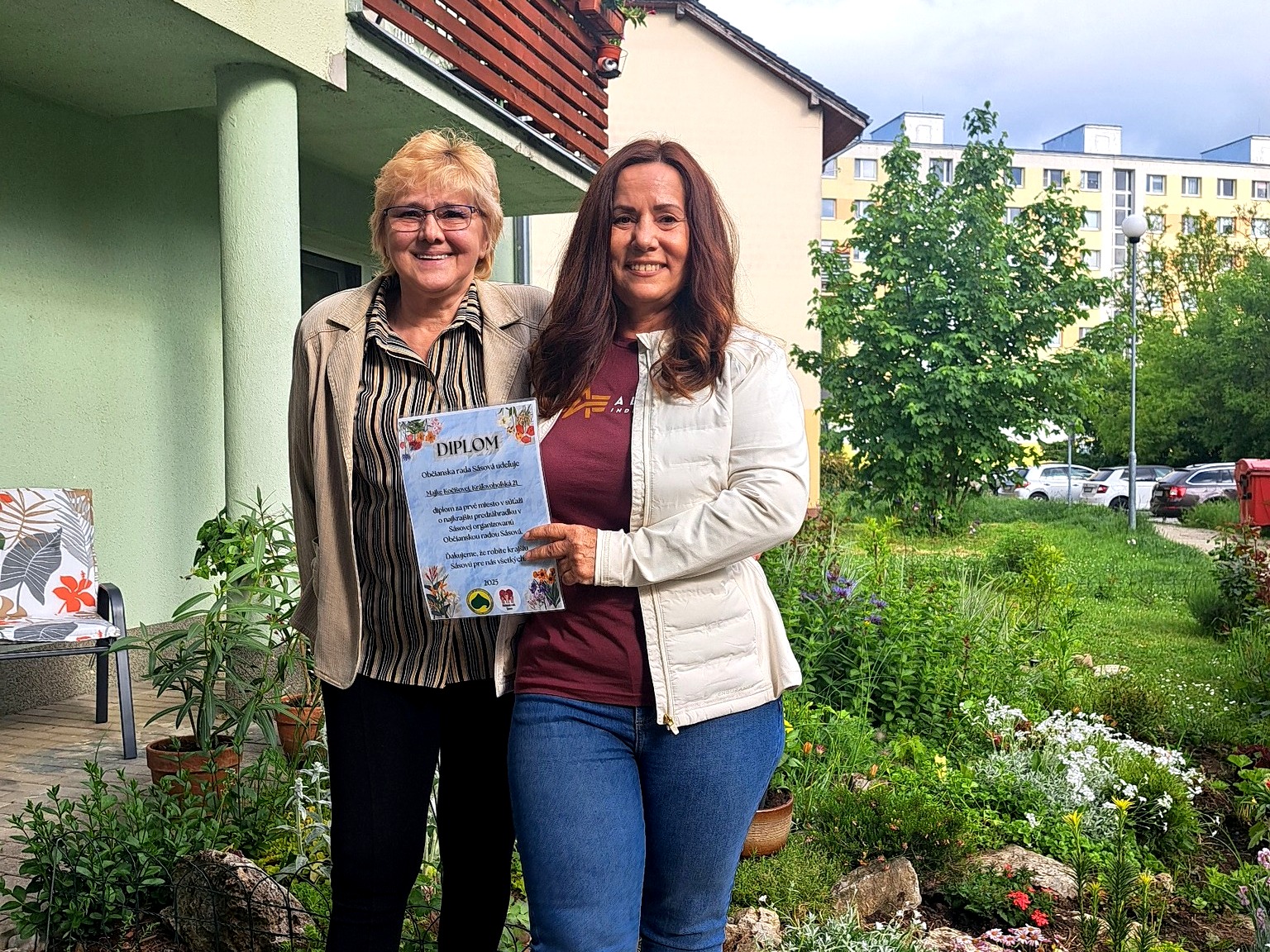 „Dnes sme boli odovzdať hlavnú výhru dekorácií a náradia na Kráľovohoľskú 21. Dve skvelé žienky – Maja Kočišová a Darina Snopková sa starajú o celú plochu pred obytným domom.“