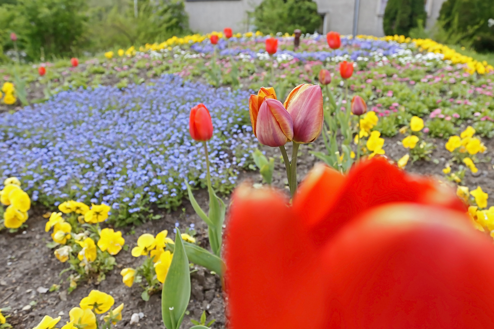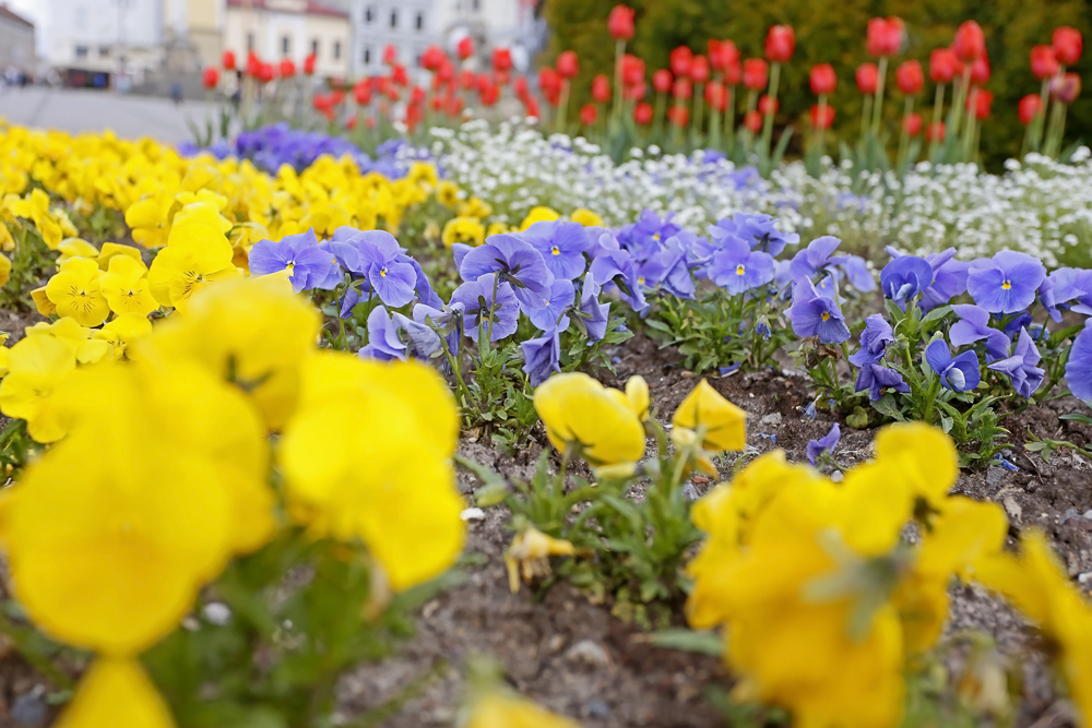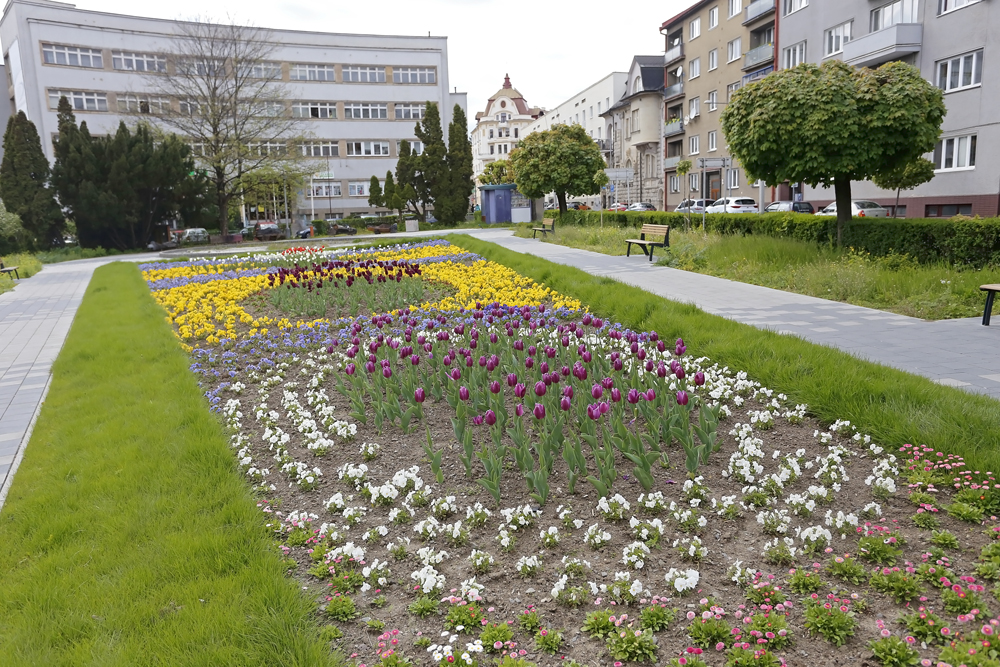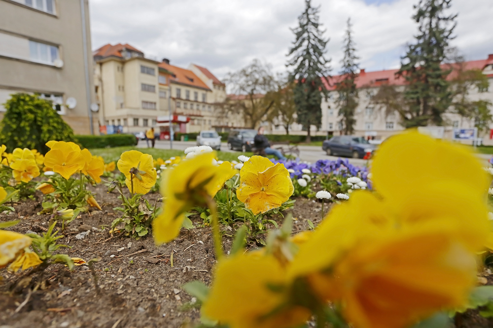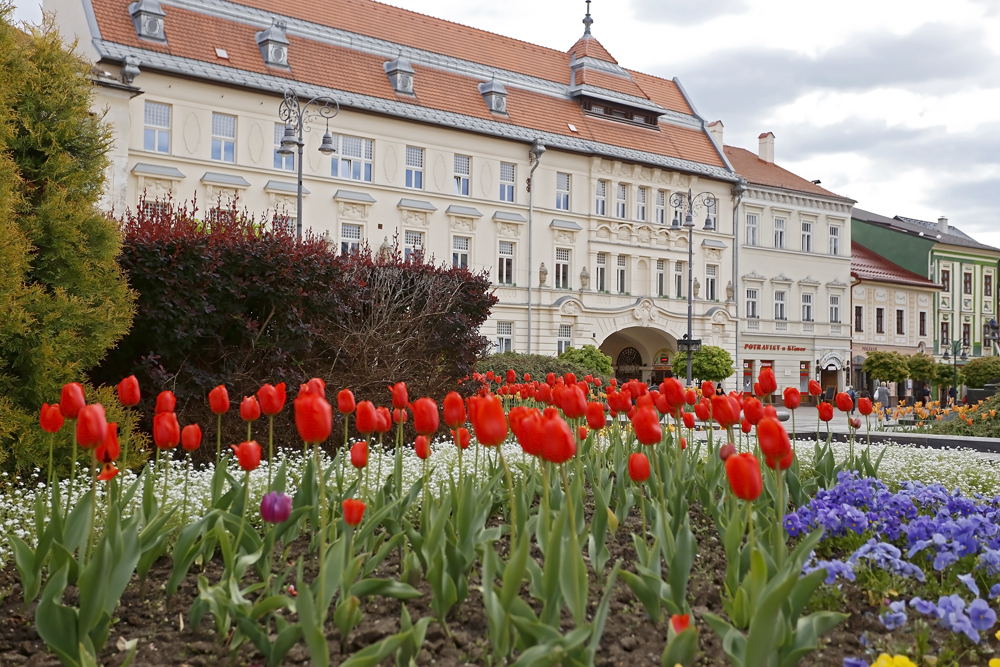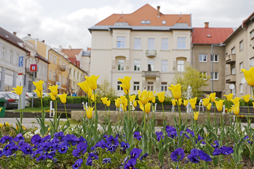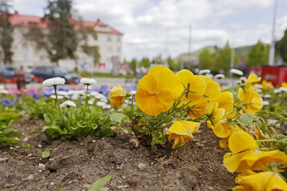 Hoci v meste pod Urpínom sa v priebehu týždňa na chvíľu ochladilo, centrum kvitne. Obzreli sme si pestré kvetinové záhony na Námestí SNP, v Národnej ulici aj pred mestským úradom.