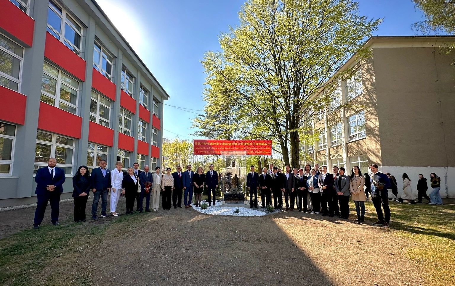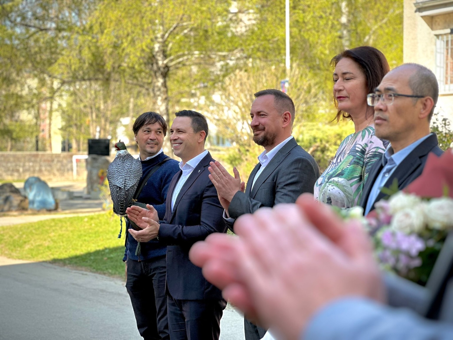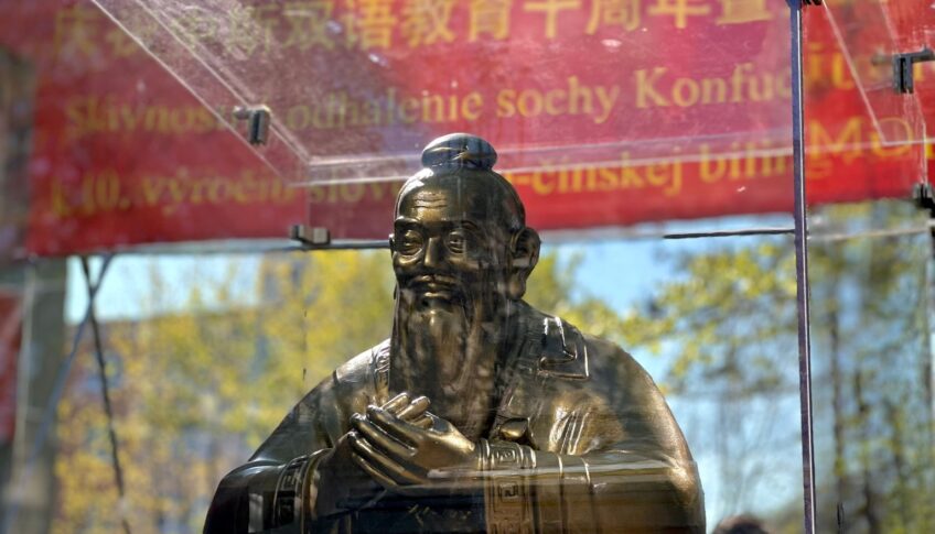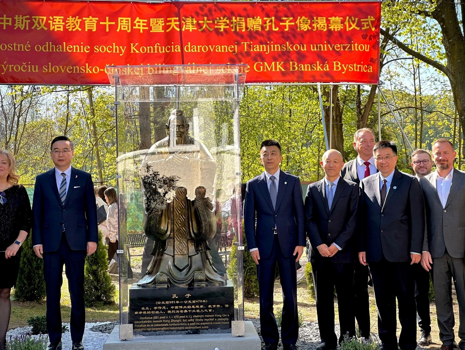 FOTO: Slávnostné odhalenie sochy Konfucia pri Gymnáziu Mikuláša Kováča v Banskej Bystrici