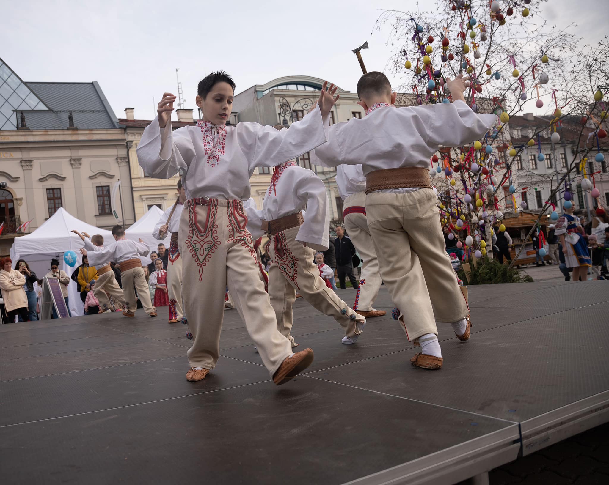 V piatok 22. marca Veľkonočné námestie v roztancovali malí folkloristi z Detského folklórneho súboru Radosť v Banskej Bystrici a svojím umeleckým talentom vyčarili úsmev na tvári nejednému návštevníkovi.