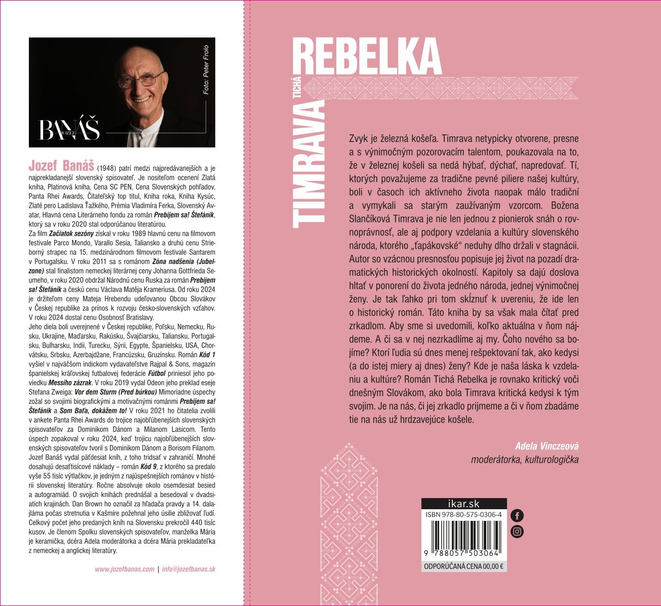 Slovenská literatúra dostala ďalší silný ženský hlas – tentoraz prostredníctvom pera Jozefa Banáša. Autor v románe Tichá rebelka Timrava oživuje príbeh spisovateľky Boženy Slančíkovej Timravy, ženy, ktorá tichým, no odvážnym spôsobom prekračovala hranice svojej doby.