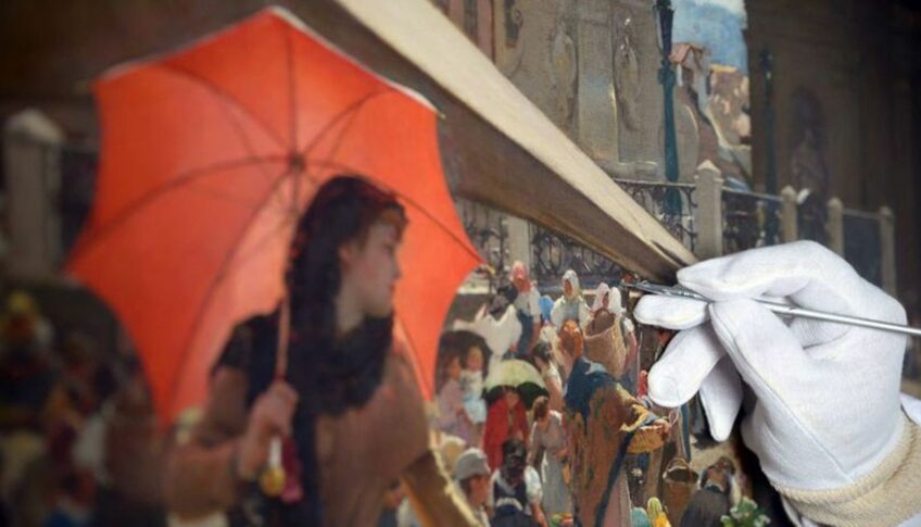 Obraz namaľovaný v benátskom štýle zakúpila pre Galériu hlavného mesta mestská rada v Budapešti, priamo vo výstavnej sieni Mücsarnoku. Po ôsmich mesiacoch dala galéria obraz k dispozícii autorovi s dodatkom, že na ňom nie je zobrazený motív Budapešti, a požiadala ho o namaľovanie nového obrazu. V roku 2013 sa u neznámeho zberateľa objavila skica – prípravná maľba, na ktorej je len časť celej kompozície, pričom hlavná postava – maliarova manželka – je oblečená v čiernych šatách a červený slnečník je neporovnateľný s tým, ktorý namaľoval neskôr na nami sledovanom obraze.