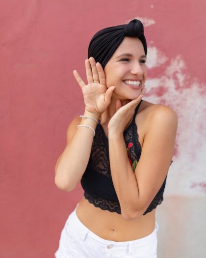 ,,Strata vlasov ma podnietila k vyhľadávaniu rôznych pokrývok hlavy. Hľadala som niečo pohodlné, no zároveň atraktívne a moderné. Žiaľ, elegantné kúsky, ktoré by podčiarkli ženskosť tu chýbali. Práve to bolo hnacím motorom, ktorý ma priviedol k šitiu takýchto produktov,“