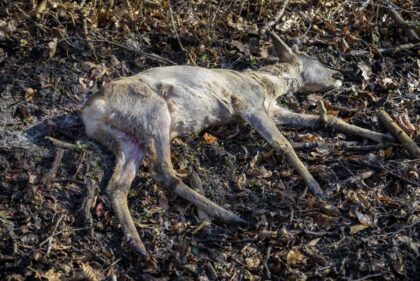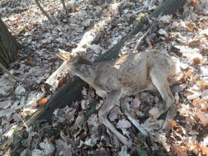 Výsledkom neuváženého voľného pohybu psov bez vôdzky v lokalite Suchý vrch je aj strhnutá srnčia zver na fotografii: