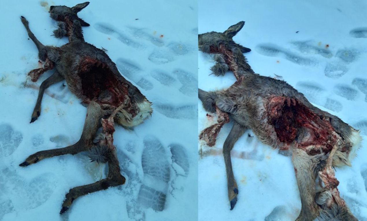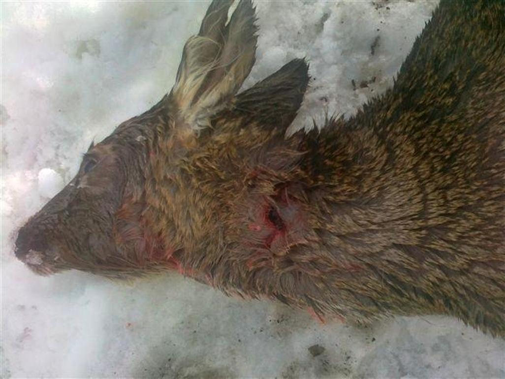 Výsledkom neuváženého voľného pohybu psov bez vôdzky v lokalite Suchý vrch je aj strhnutá srnčia zver na fotografii: