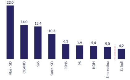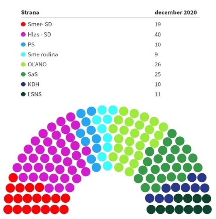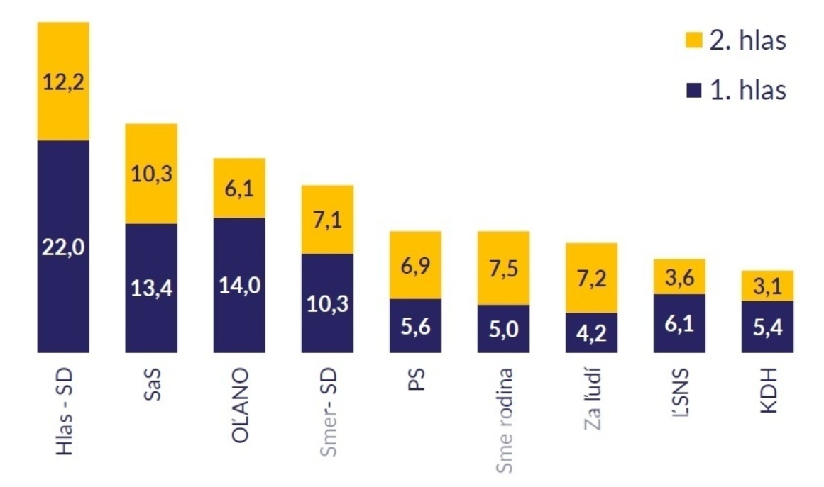 Ak by sa parlamentné voľby konali v decembri, ich víťazom by sa stala strana HLAS – sociálna demokracia so ziskom 22 percent hlasov. Druhé miesto by obsadilo hnutie OĽANO (14 percent) pred SaS (13,4 percenta).