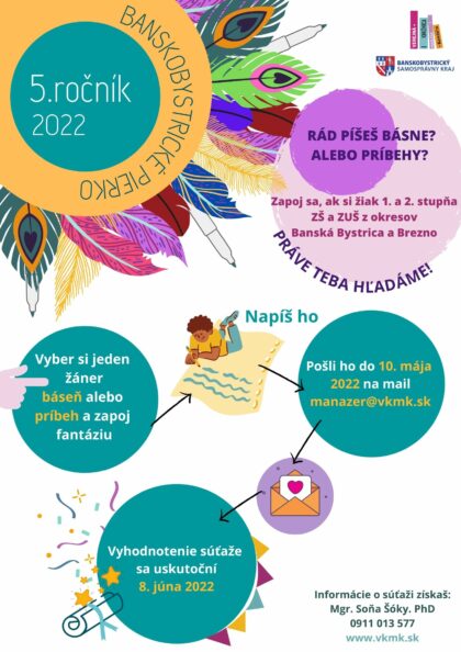 Verejná knižnica Mikuláša Kováča (VKMK) pripravila už piaty ročník autorskej literárnej súťaže v písaní poézie a prózy pre žiakov 1. a 2. stupňa ZŠ a žiakov literárno-dramatických odborov ZUŠ pod názvom: Banskobystrické pierko 2022.