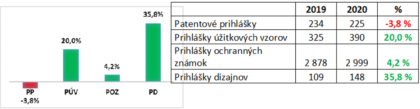 Prehľad podaných prihlášok v ÚPV SR v rokoch 2019 a 2020