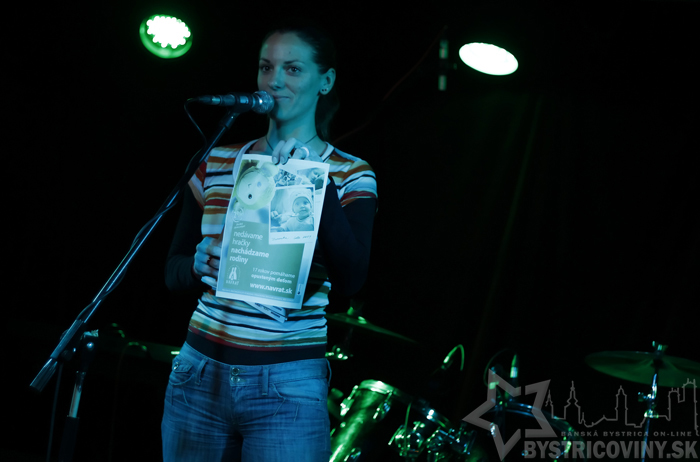 Medzi prvým a druhým vystúpením sa publiku prihovorila členka OZ Návrat, ktorá predstavila hlavné ciele združenia a zároveň požiadala všetkých prítomných o pomoc pri hľadaní opice, ktorá by sa mala stať maskotom združenia ( viac informácii nájdete na stránke OZ Návrat). Nie len výborná hudba ale aj dobročinná myšlienka potešila všetkých prítomných, ktorí sa rozhodli pomôcť opusteným deťom práve takouto formou.