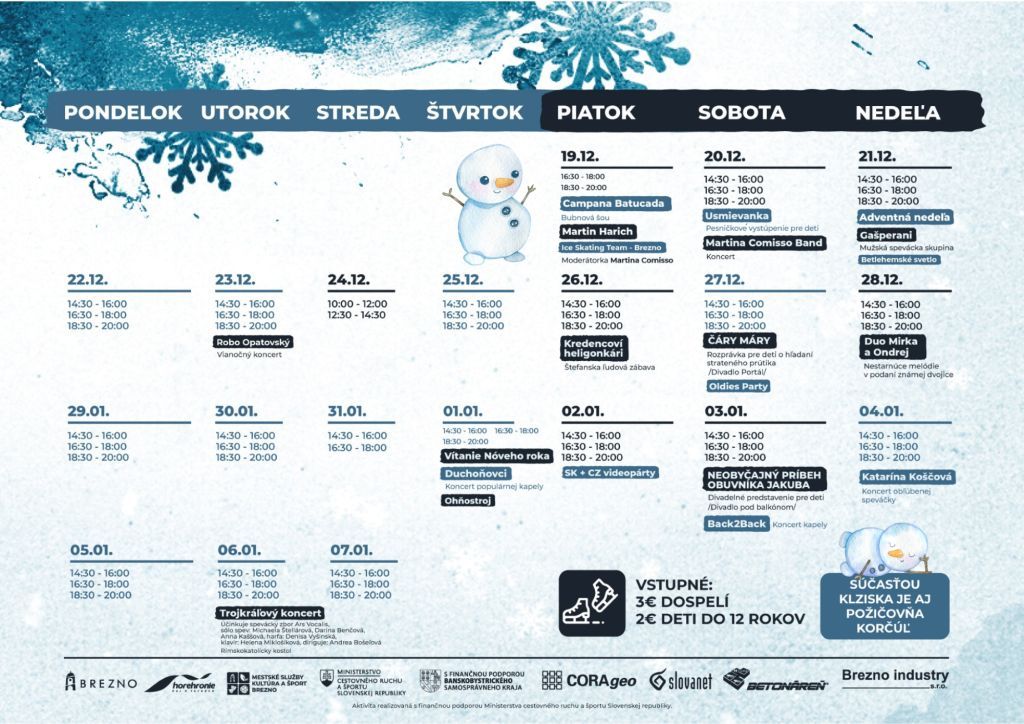 Od 20. 12. 2025 sa piatky, soboty a nedele budete môcť bezplatne (s regionálnou zľavovou kartou Horehornie Card) zviesť na ľadovú plochu Klziskobusom na trase z Bystrianskej doliny do Brezna (zastávka ul. ČSA) a späť, a to podľa platného grafikonu, ktorý nájdete TU.