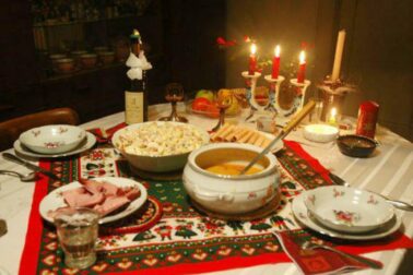 Na ňu sa musí vmestiť všetko vianočné tradičné jedlo – kapustnica či rybacia polievka, šalát, ryba či rezeň, oblátky, med, cesnak, ovocie, nápoje, u niektorých aj opekance…, pretože od štedrovečerného stola by sa podľa tradície nemalo vstávať. Hovorí sa, že kto od neho odíde, v budúcom roku pri ňom už nemusel sedieť.
