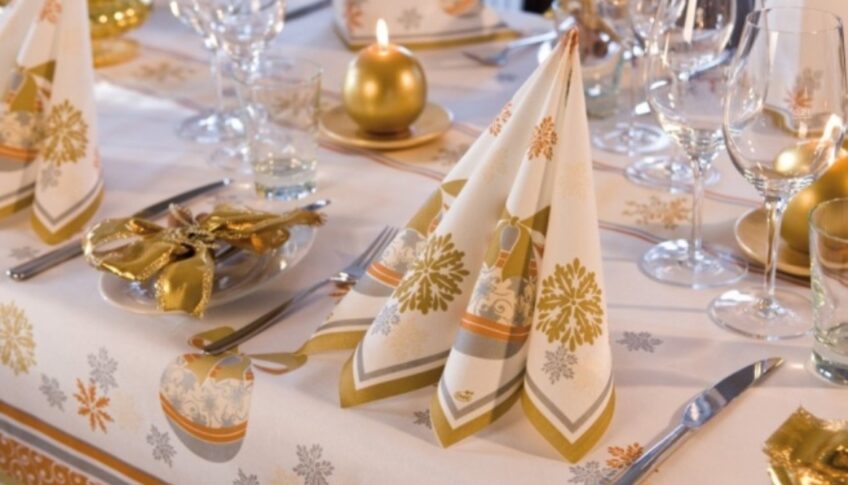 Netreba preto podceňovať výber servítok či krúžkov na prestieranie, ale ani svietnika a sviečok, ktoré musia byť nové, ešte nepoužité. Prvý hlboký tanier na polievku tak môžete efektne ozdobiť pekne poskladanou servítkou, ktorá krásne vynikne, ak ku nej pridáme plátky sušeného ovocia alebo sladký cukrík, či drobný maličký darček ako prekvapenie pre hostí.