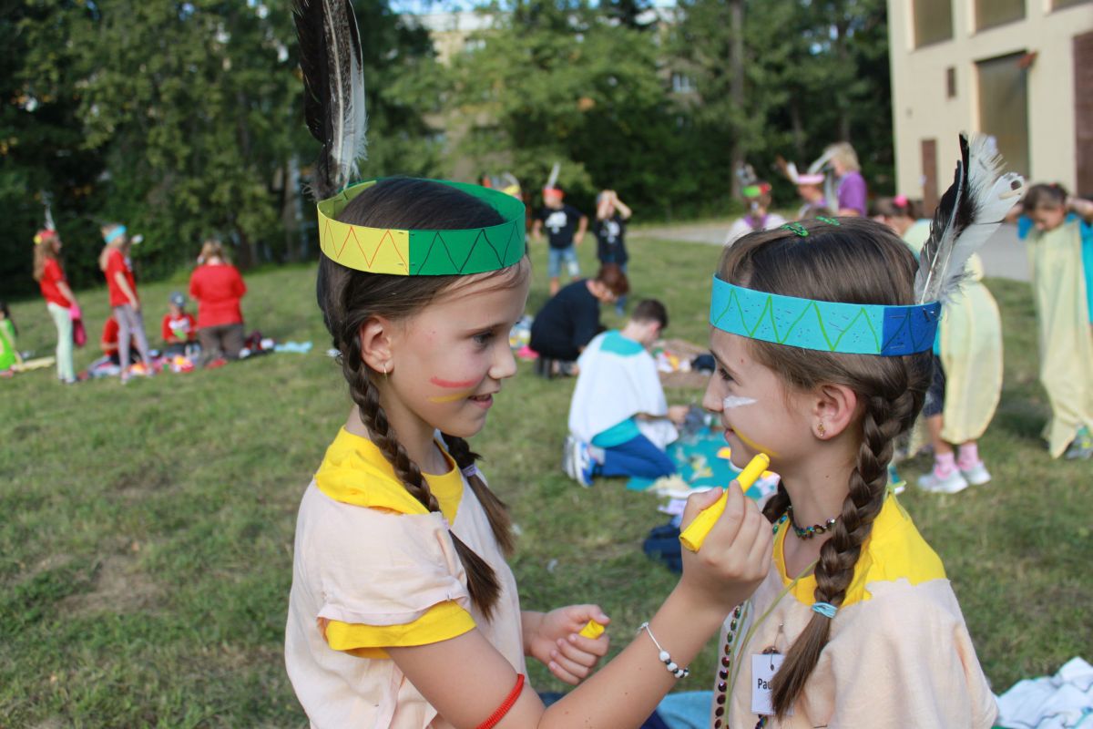 Deti sa rozdelili do šiestich družstiev, ktoré boli rozlíšené farebnými tričkami, velenie prevzali ich náčelníci z radoch knihovníčok a ochotných dobrovoľníčok. Ďalšou zaujímavou aktivitou bolo skladanie si indiánskych mien. Deti s úsmevom prijali svoje nové indiánske mená, ako napr. Ohnivý šíp, Slnečný oheň, Nočný oheň, Dravá rieka, Veľký bizón, Zlatý kvet, Červený oblak, Orlie pierko, Biely orol a ďalšie.