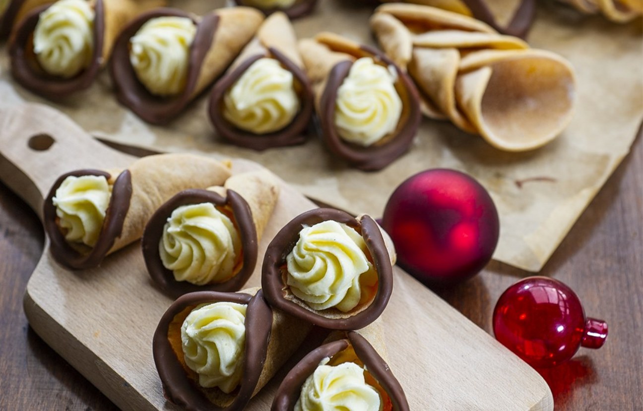 Plnenie: Naplníme pláty a necháme ich stáť najlepšie cez noc. Na vrch môžeme dať čokoládovú polevu alebo posypeme s kakaom zmiešaným s práškovým cukrom a škoricou.