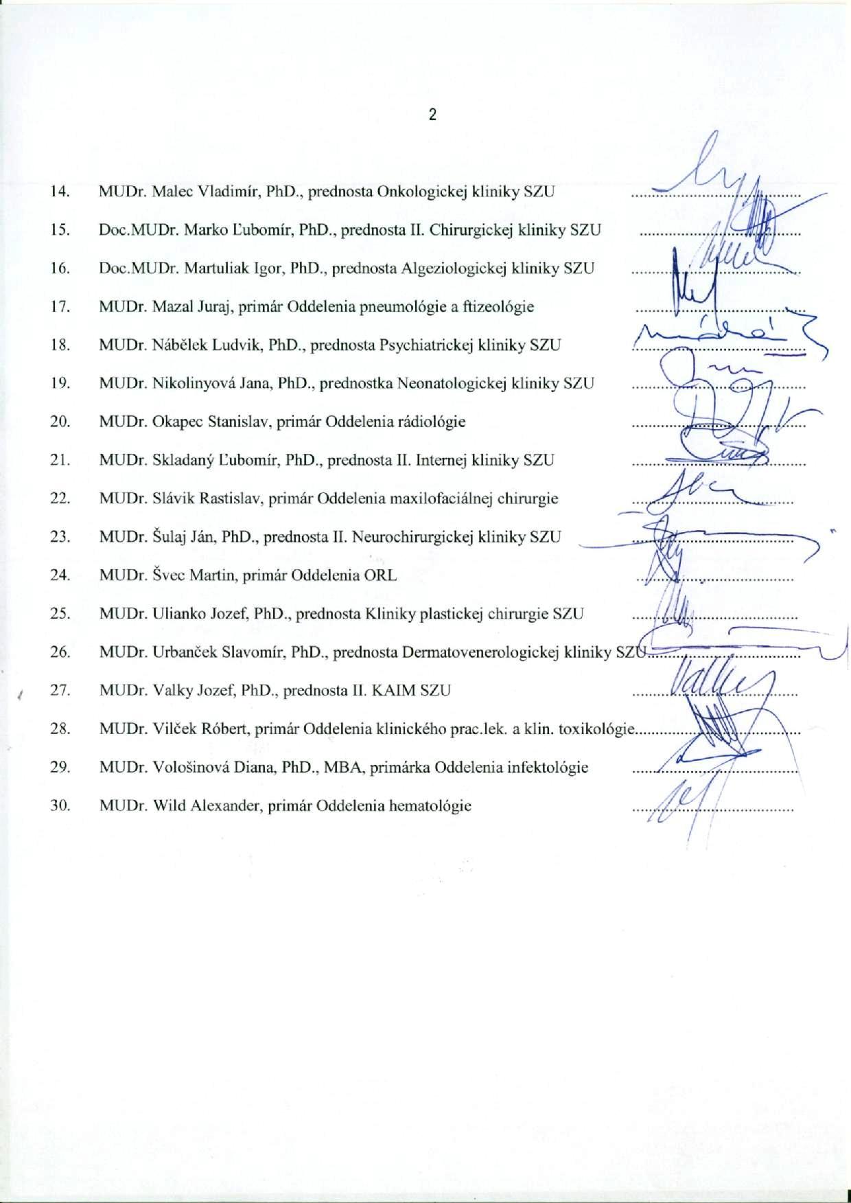 Vyhlásenie prednostov a primárov Rooseveltovej nemocnice